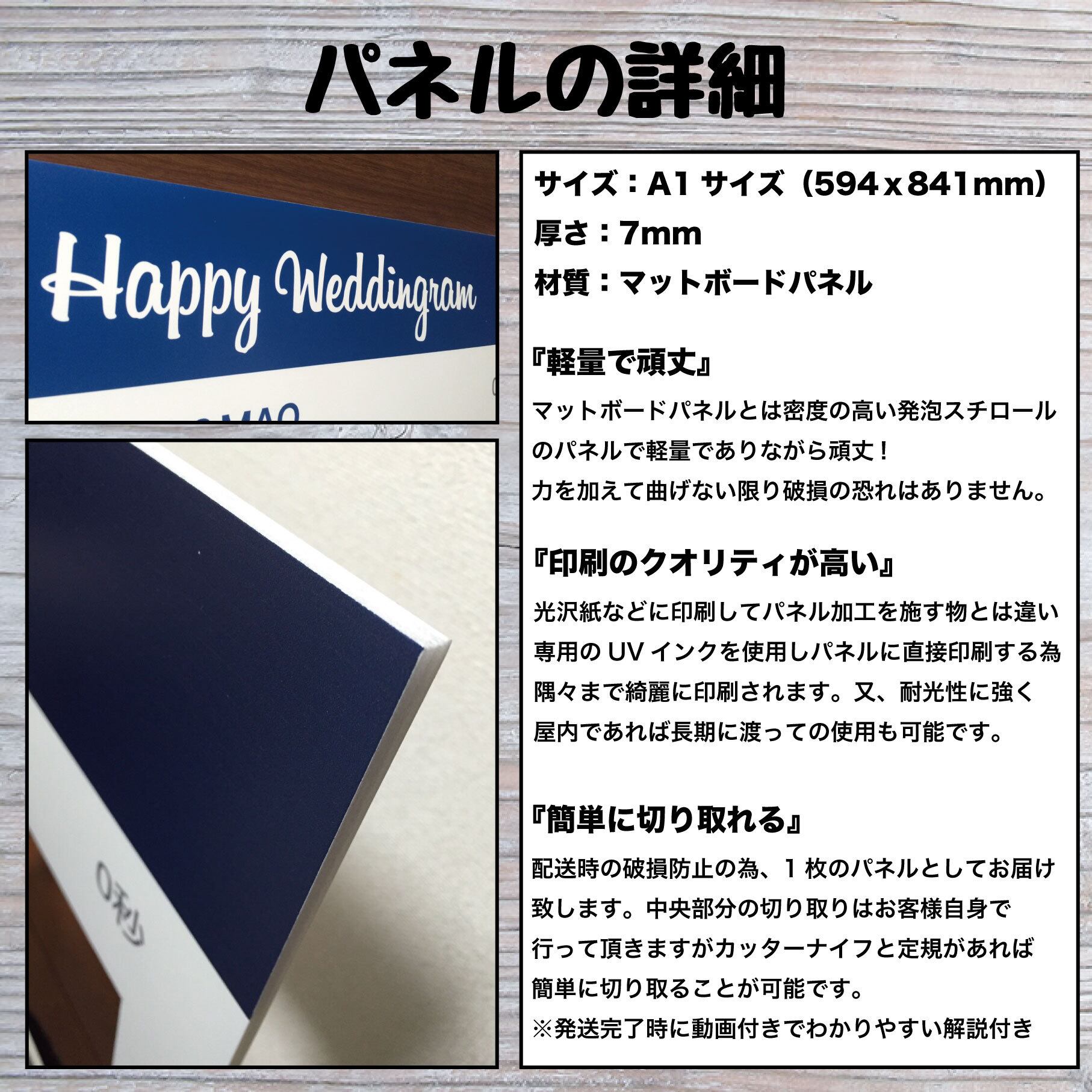専用UVインクを使用しパネルへ直接印刷される高品質な商品です。